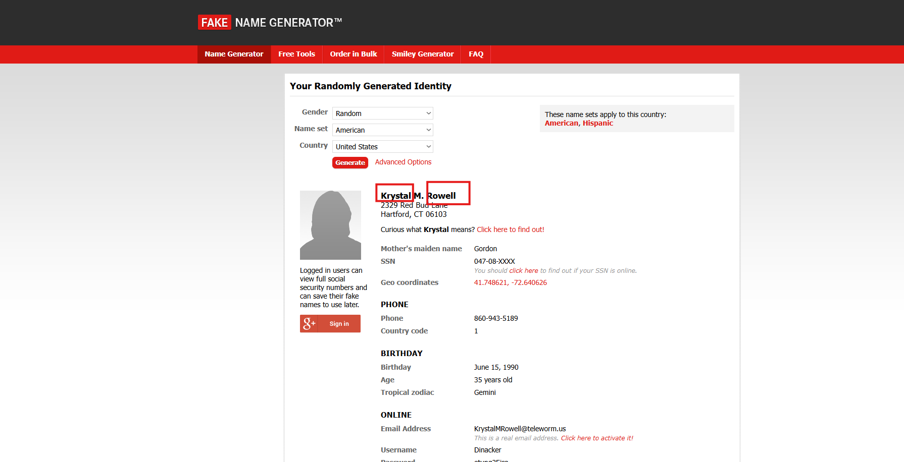 Step 1: Go to https://www.fakenamegenerator.com/ to find a few common US names (or use Google).