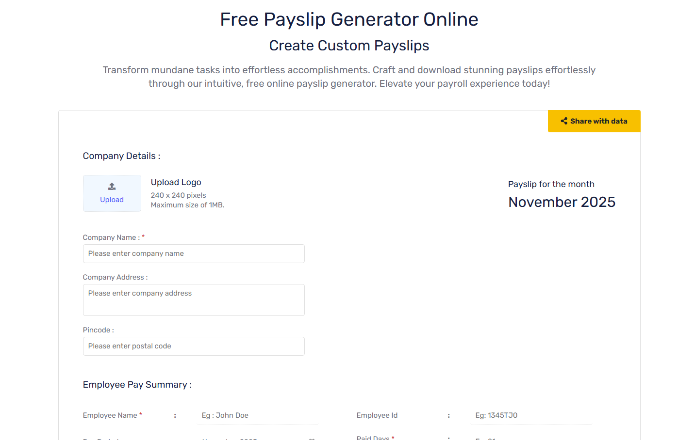 Step 5: Go to https://www.hrmware.com/payslip-generator, fill in the school information above, upload the school logo, and enter the information generated by Gemini.